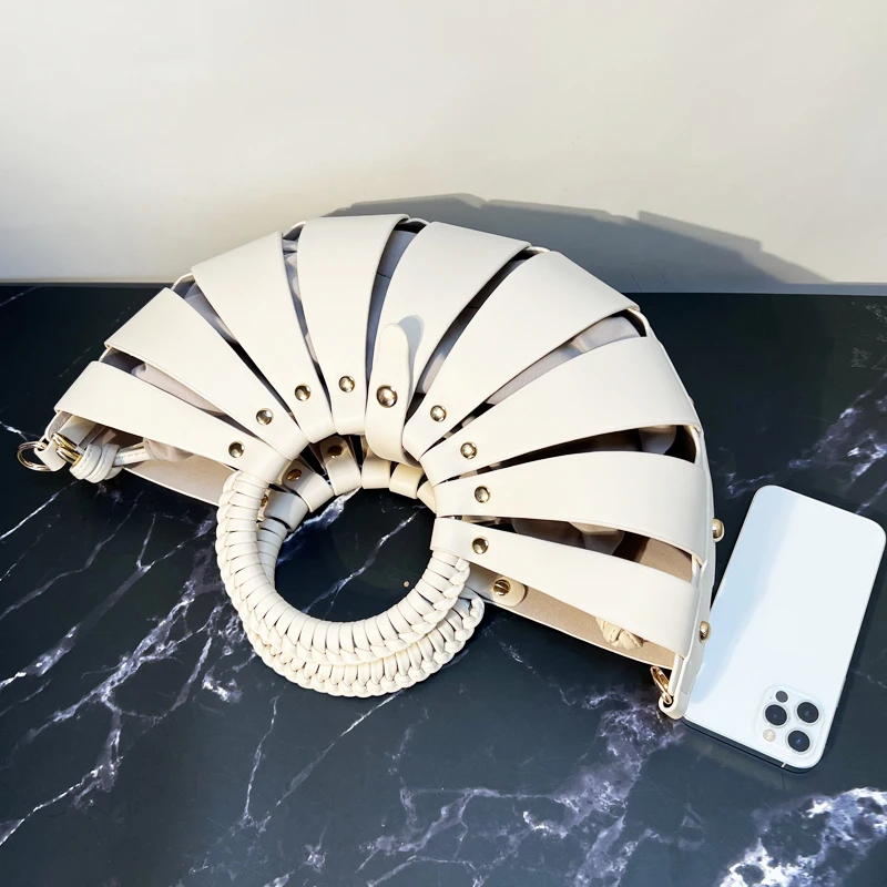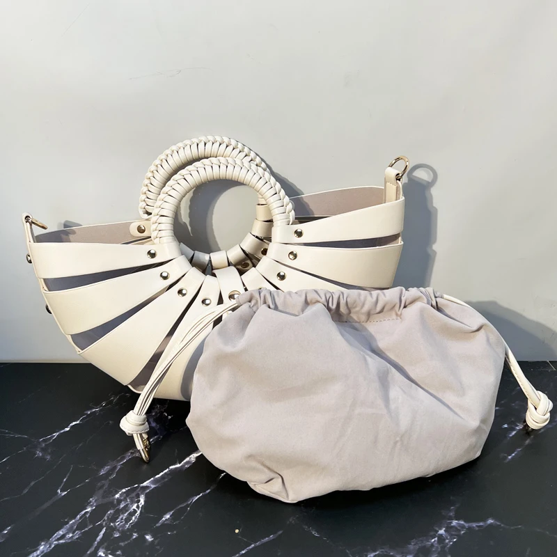 Casual Half Moon Bags For Women Luxury Designer Handbag Purses New In PU Rivet Hollow Top Handle With Inner Pocket Shoulder