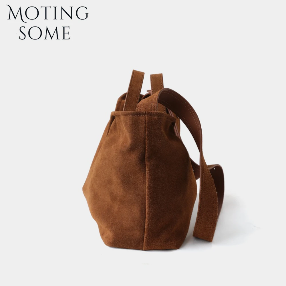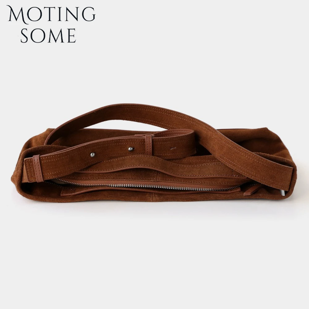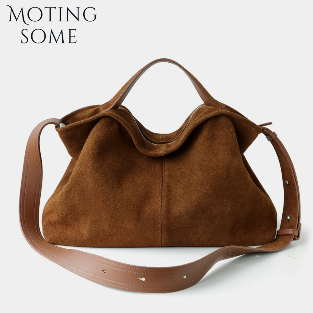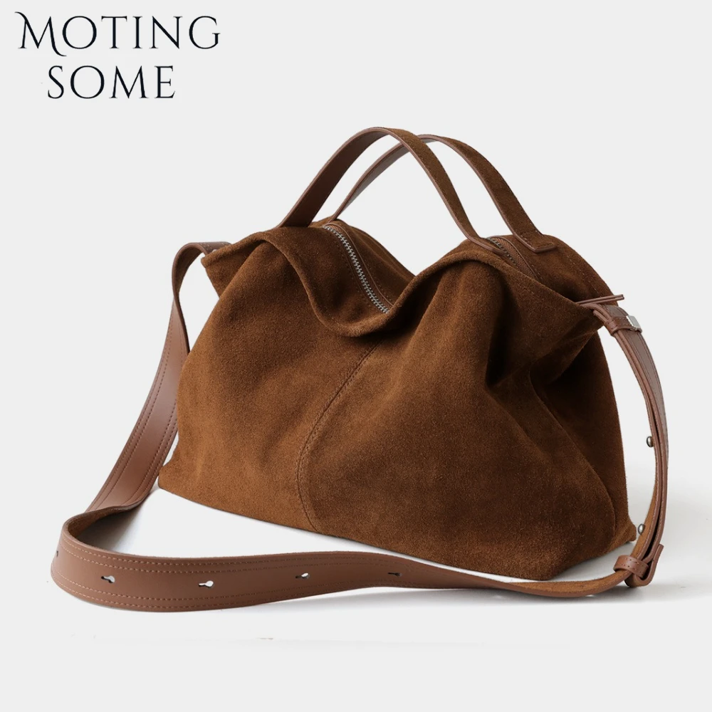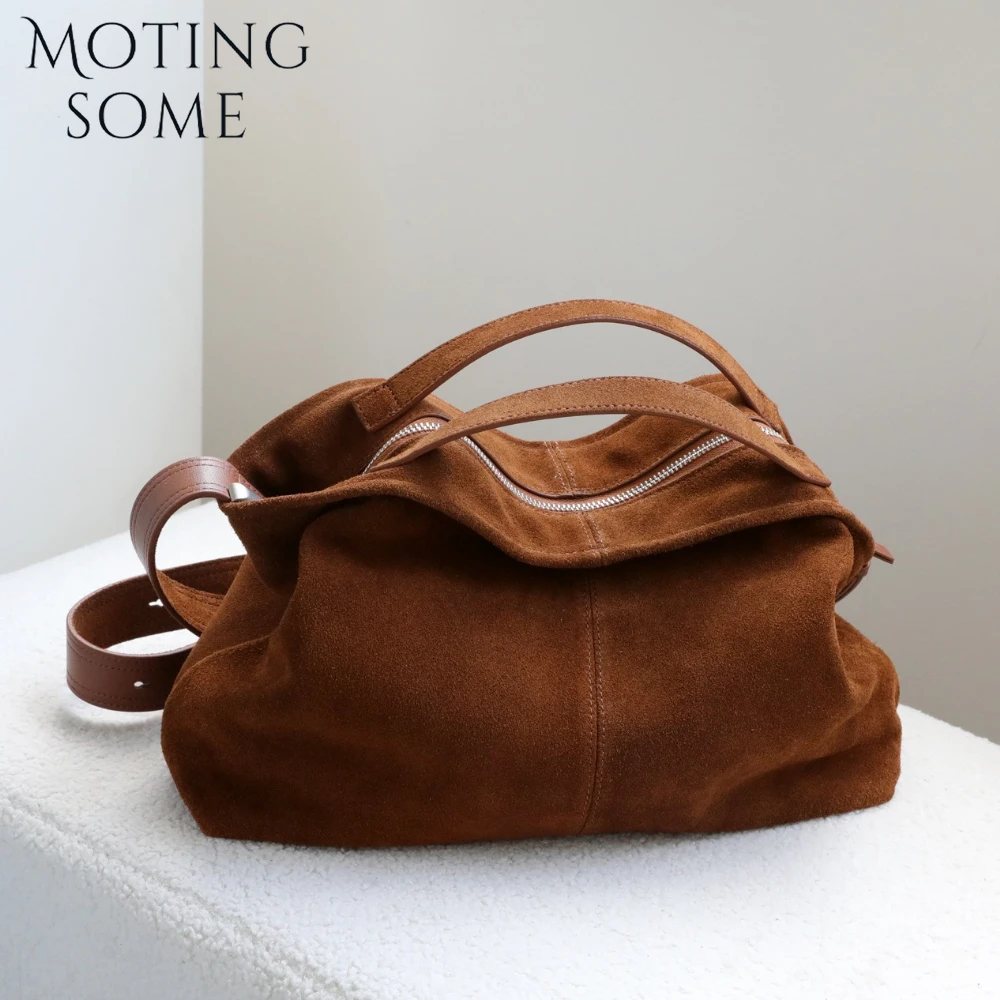 Motingsome Natural Suede Leather Handbag Women Roomy Shoulder Handbag and Purse Lazy Style Soft Matte Cowhide Tote Bags New In