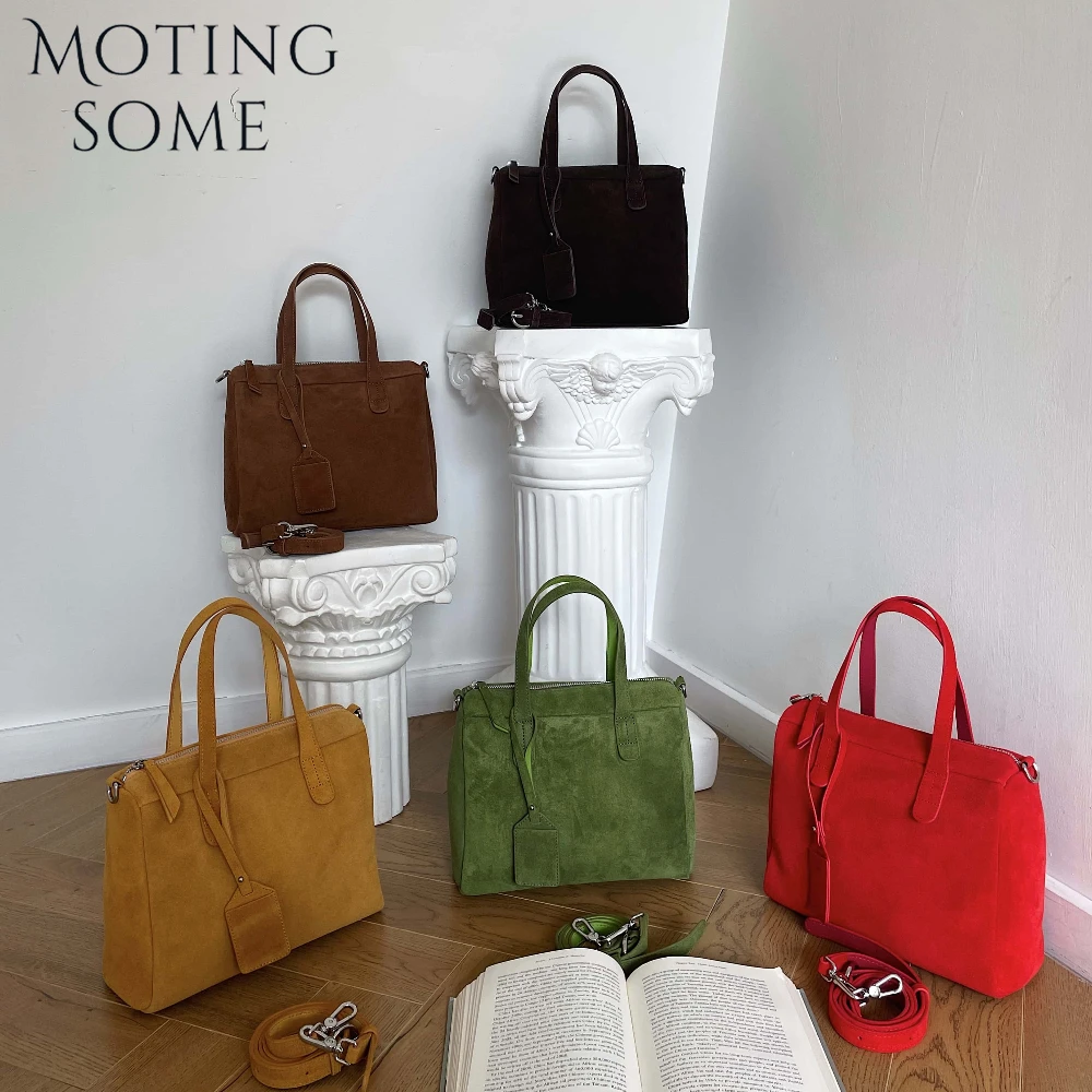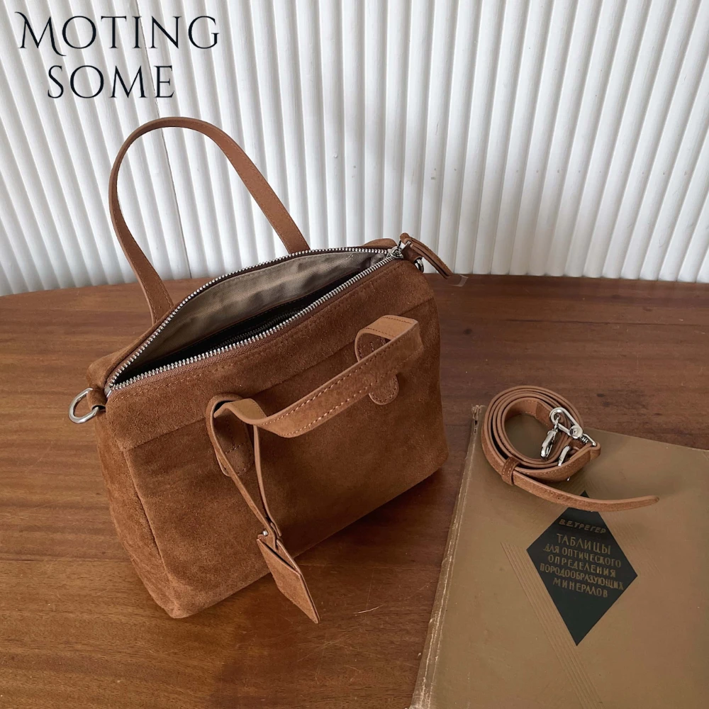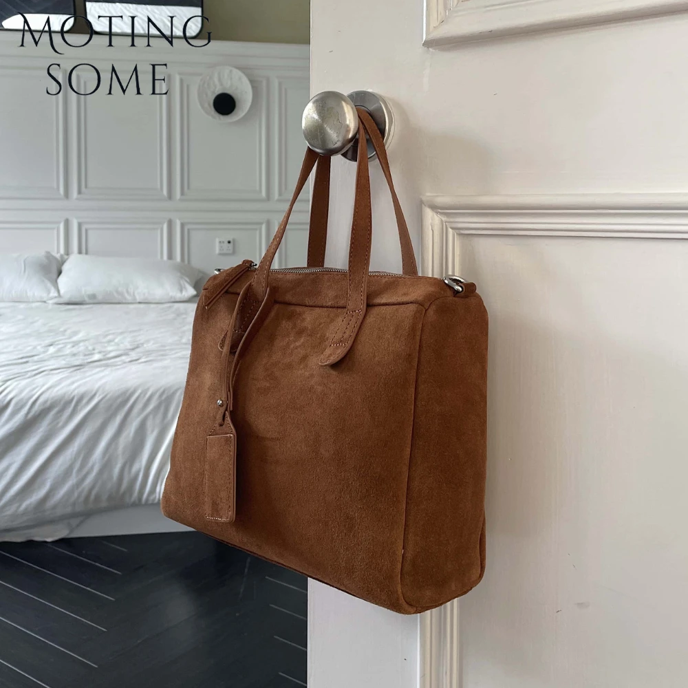 Motingsome Suede Genuine Handbag Women Shoulder Bag Square Tote Winter Purse Natural Matte Leather Briefcase Luxury Designer Bag