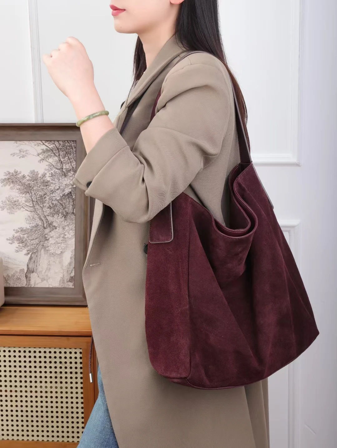 Soft Suede Cow Leather Women’s Shoulder Crossbody Bags Luxury Designer Brand Ladies High Quality Large Tote Bag Autumn Winter